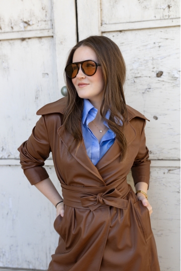Velká náprsní kapsa, ostrý límec, tříčtvrteční rukáv a vázání ve spodní části, které umožní kabátek podkasat nebo nechat volněji.